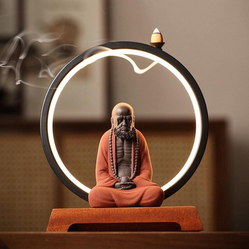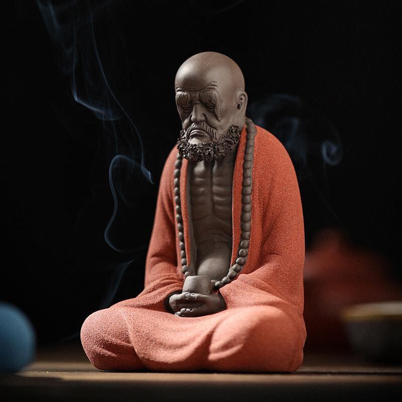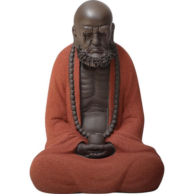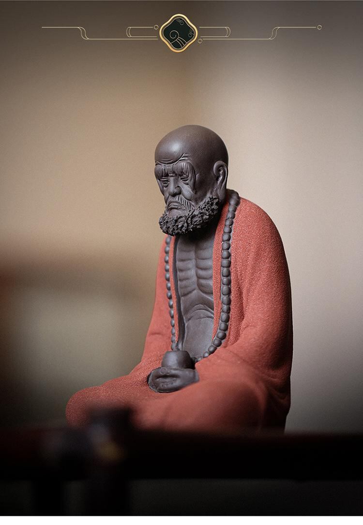 置物 達磨大師 禅意 人物像 紫砂陶器 中国風 工芸品 インテリア 玄関 リビング 装飾品 癒し オブジェ 高級感 赤色 青色