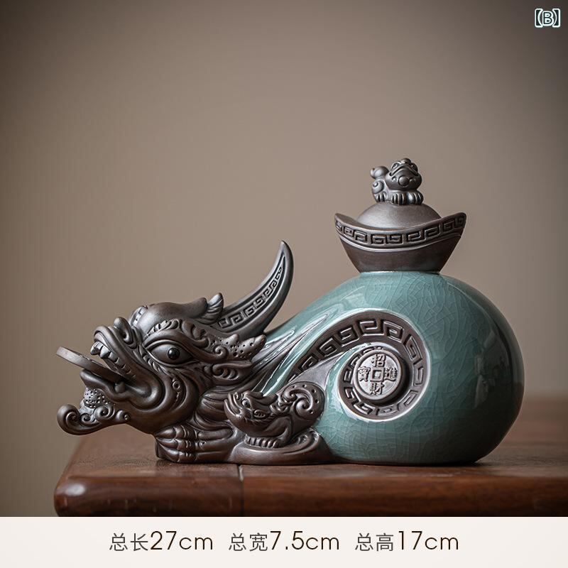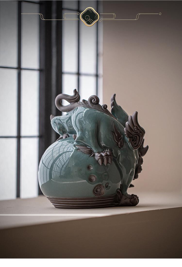 置物 貔貅 招福 金運 開運 陶器 哥窯 貫入 中華風 インテリア オブジェ デザイン 高級感 風水 リビング 玄関 オフィスデスク 飾り