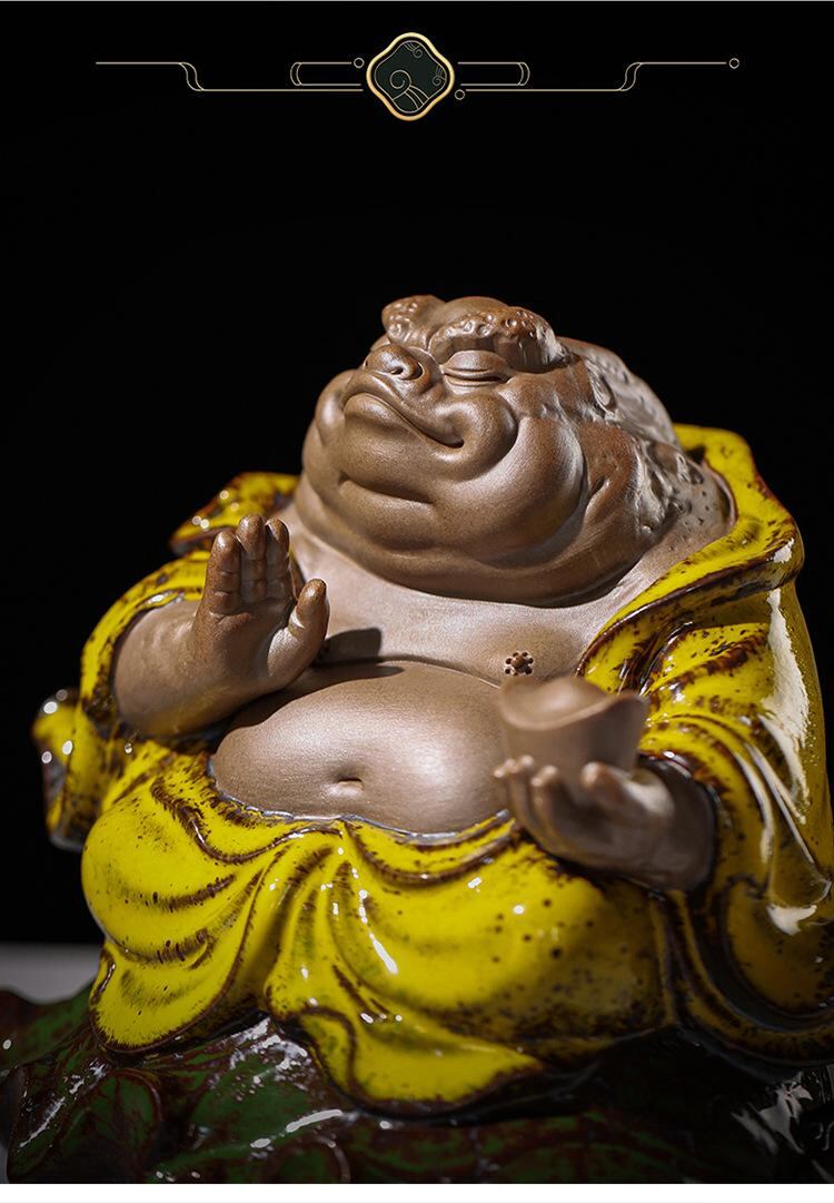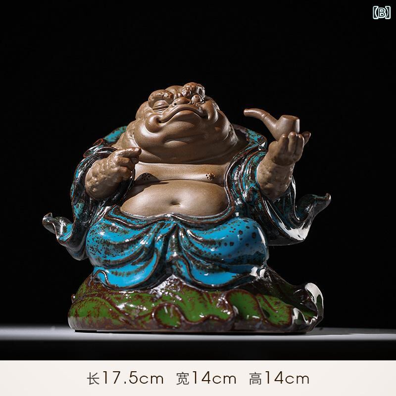 置物 金蟾 三本足の蛙 招財 開運 ラッキーアイテム 紫砂陶器 陶器 新中式 禅意 モダン インテリア リビング 卓上 飾り 工芸品 レッド ブルー イエロー
