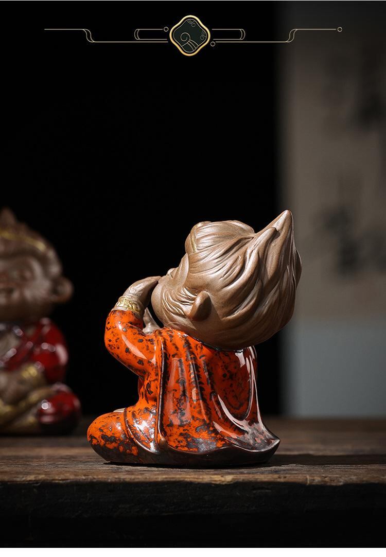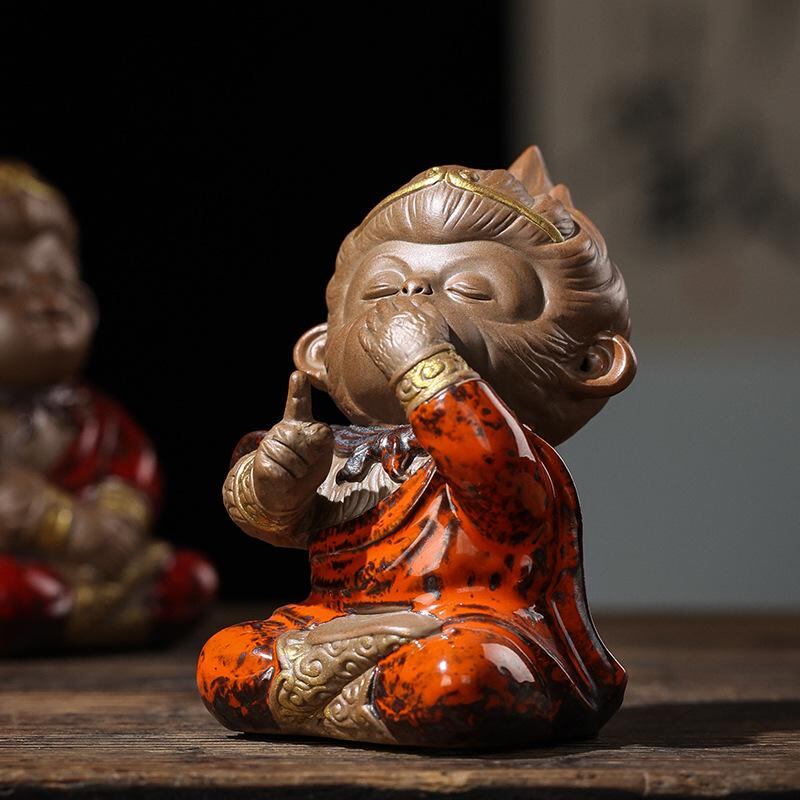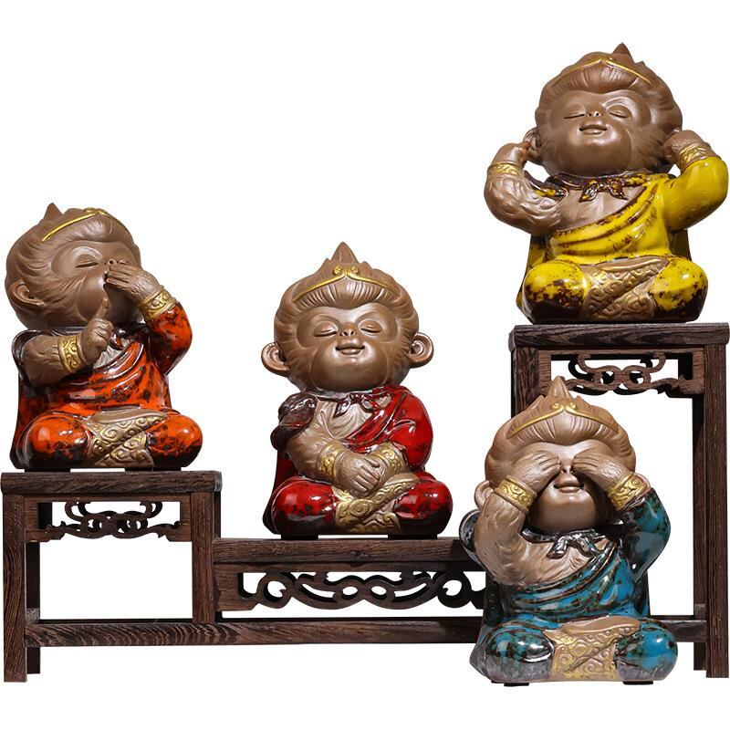 置物 陶器 孫悟空 四不猿 ユニーク 中華風 リビング オフィス 玄関 書斎 デスクトップ 装飾 インテリア 雑貨 茶道 茶寵 縁起物 開運