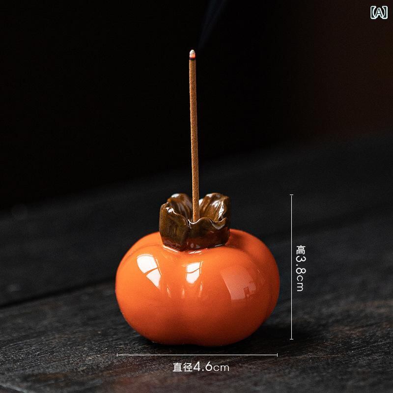 お香立て 陶器製 柿モチーフ 室内用 リビング 玄関 卓上 書斎 寝室 インテリア置物 開運 招福 縁起物 手作り感 リラックス 癒やし 贈答品