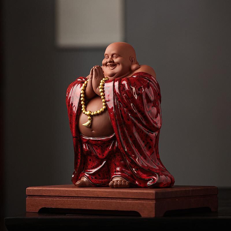 置物 布袋様 弥勒菩薩像 モダンチャイニーズスタイル 紫砂陶器製 金運招来 開運 招福 縁起物 笑顔の仏像 リビング 玄関 オフィス デスク 卓上 インテリア オブジェ 飾り物