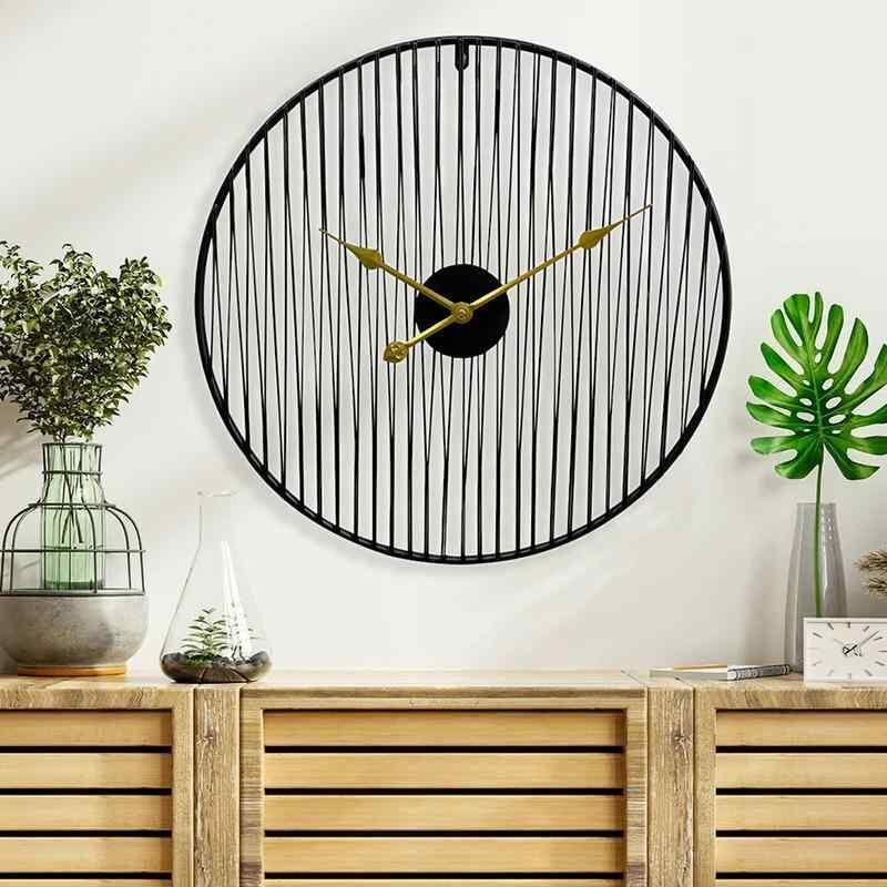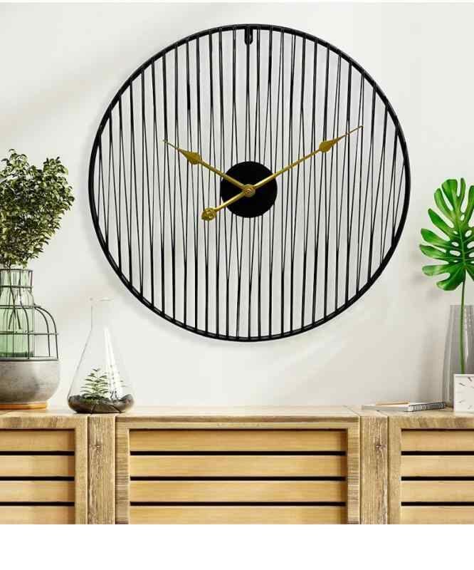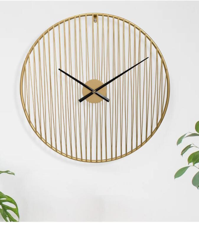 壁掛け時計 アメリカン シンプル 円形 静音 スイープムーブメント メタル製 書斎 リビング 玄関 店舗用 ウォールデコ ゴールド ブラック ラインアート モダン おしゃれ 電池式