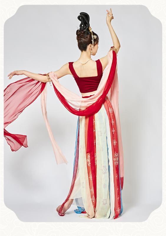 ダンス衣装 レディース 古典舞 民族衣装 漢服風 中華風 エスニック 敦煌飛天 スタイル 優雅なドレープ セットアップ 再生繊維 テンセル パールシフォン 舞台 発表会 練習着 イベント用
