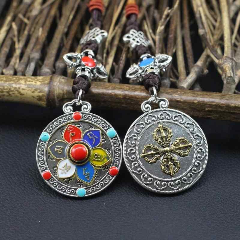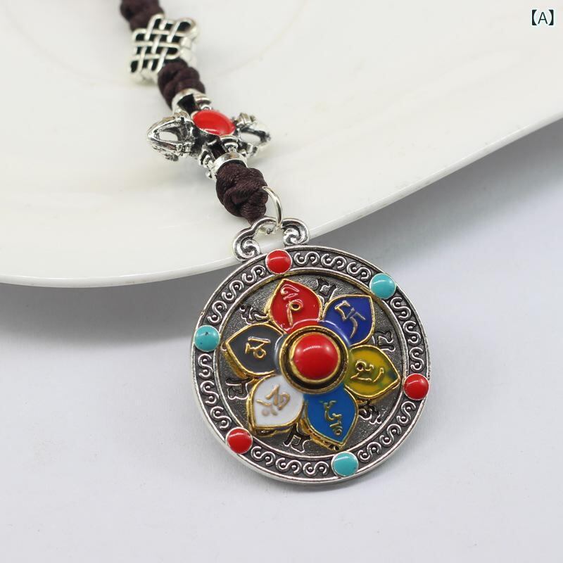 バッグチャーム 回転式 九宮八卦 六字真言 八宝吉祥 お守り 合金製 開運グッズ 幸運 魔除け 旅行記念品 エスニック レトロ アンティーク調 大きめサイズ ファッション小物