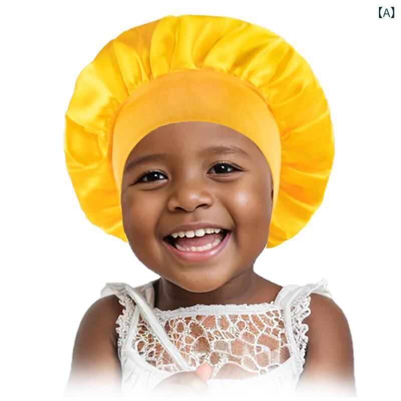ナイトキャップ ベビー キッズ サテン 伸縮性 ポリエステル 丸型 ドーム型 キャンディカラー 通気性 部屋着 スリープキャップ
