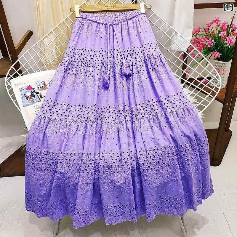 スカート レディース ミディ丈 Aライン ハイウエスト 切り替え 凝った クロシェ レース フレア ボリューム 綿 コットン 普段使い オフィス カジュアル きれいめ 上品 フェミニン 涼しい