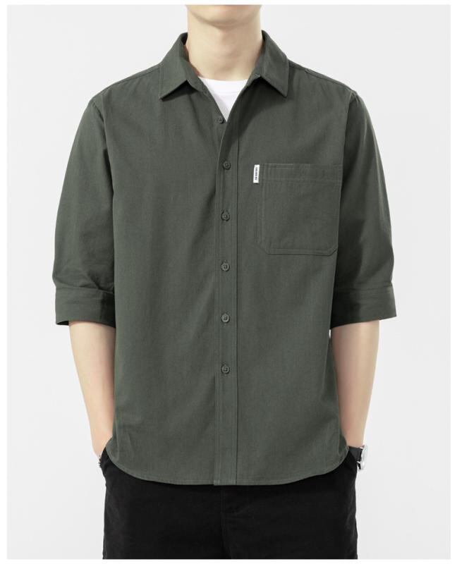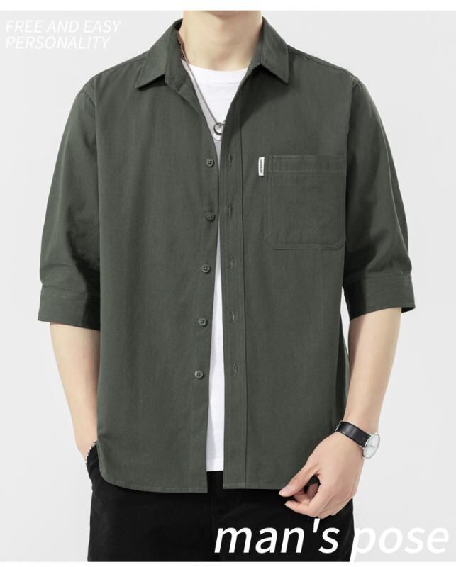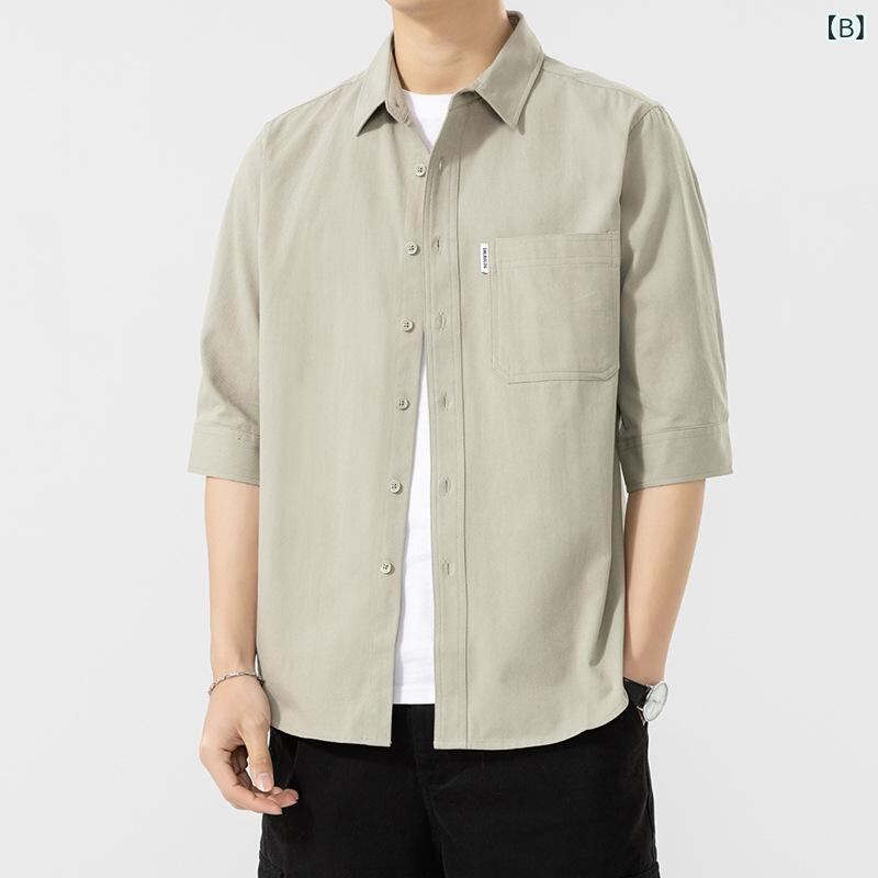 シャツ メンズ 七分袖 綿 ノーアイロン ウォッシュ加工 襟付き 無地 カジュアル レギュラーフィット 夏 普段使い 着回し 羽織り トップス
