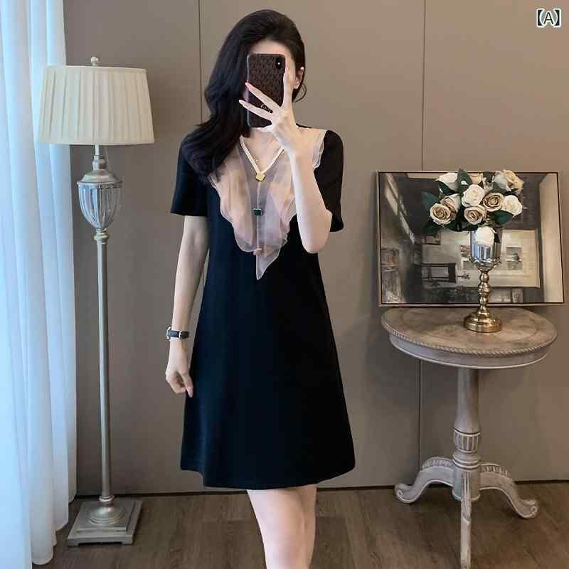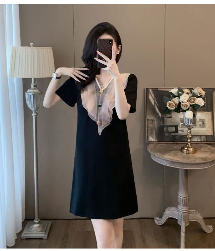 ・カテゴリ: ワンピース・スタイル: 通勤・主な素材: 綿 50%〜70%・柄: 花柄・加工: パッチワーク、切り替え・丈: ミディ丈・スカートシルエット: Aライン・ネックライン: Vネック・袖丈: 半袖・ウエスト: ミッドウエスト・デザイン要素: フリル・カラー展開: ブラック・サイズ展開: S, M, L, XL, XXL・開閉: プルオーバー