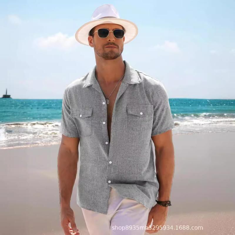 シャツ メンズ 半袖 ポリエステル リネンライク 無地 襟付き 開襟 カジュアル ビジネスカジュアル UVカット 抗菌防臭 シワになりにくい 速乾