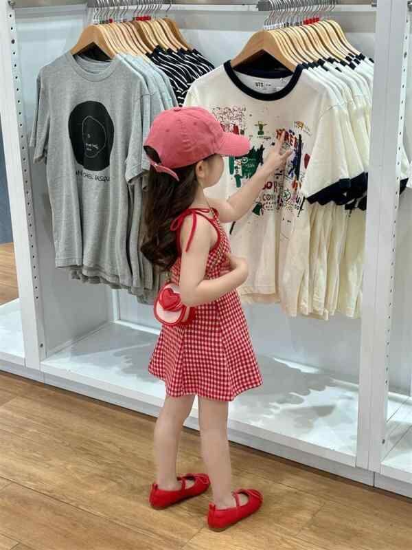 ワンピース キッズ 女の子 韓国風 チェック柄 キャミソール ドレス おしゃれ かわいい ショート丈 プリンセス サマードレス 綿素材 コットン 赤チェック 3歳 8歳 100cm 140cm対応