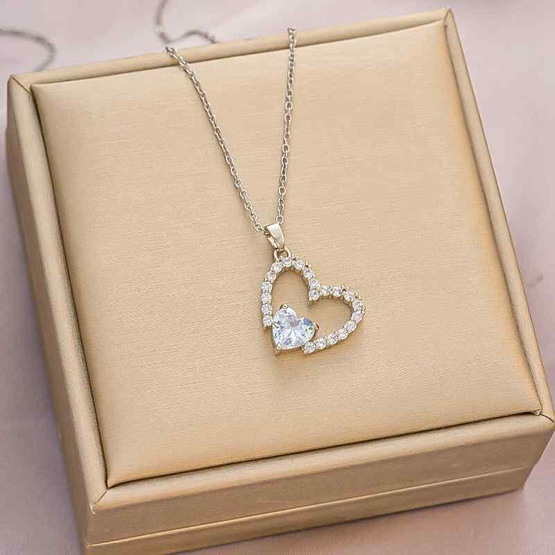 ネックレス レディース ハート型 透かし彫り フルストーン ジルコニア ペンダント 鎖骨チェーン スネークチェーン シルバーカラー 合金製 メッキ加工 高級感 普段使い オフィス デイリー シンプル 上品 エレガント