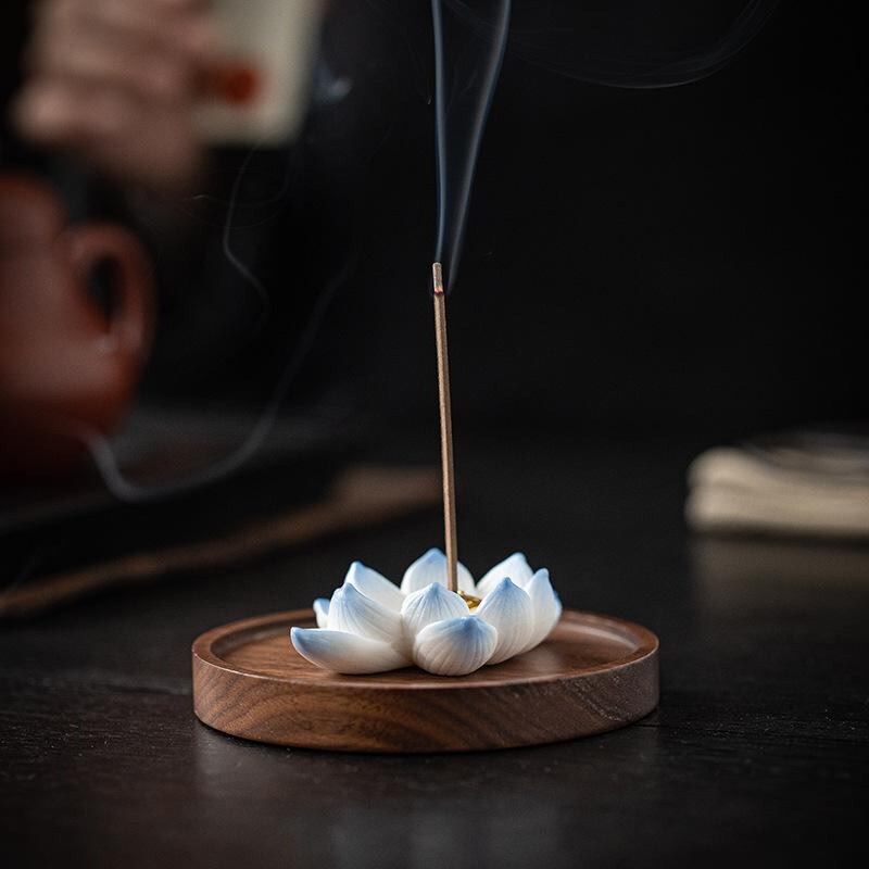 線香立て 陶器製 蓮の花 ミニ 小型 線香 お香スティック 禅スタイル 和風 香道 インテリア 装飾品 室内用 家庭用 リビング 寝室 リラックス 癒やし 瞑想