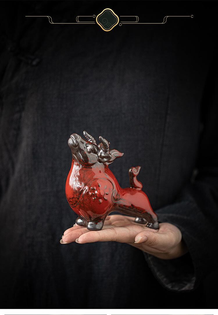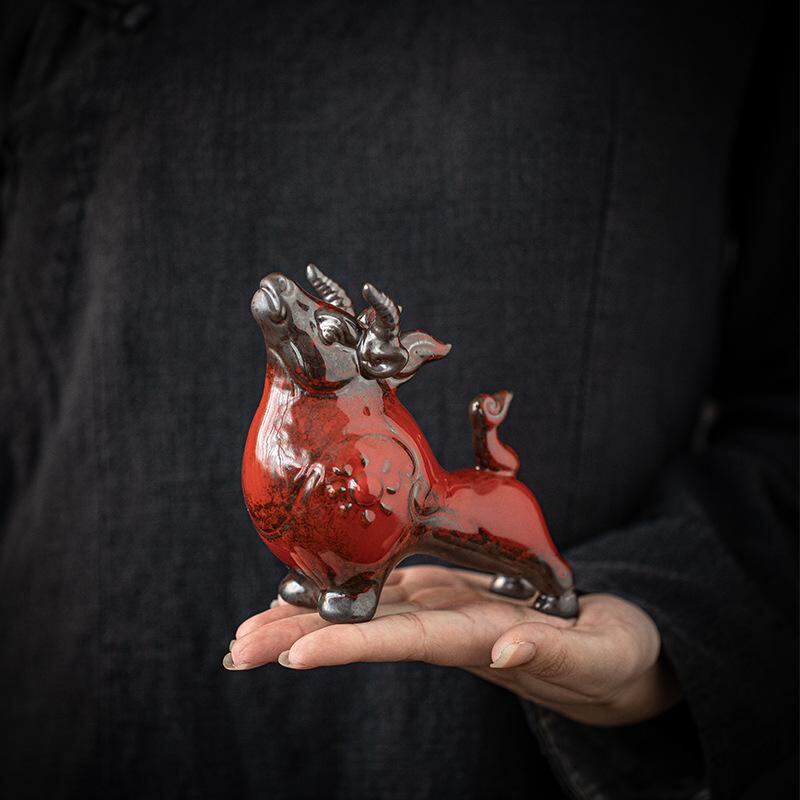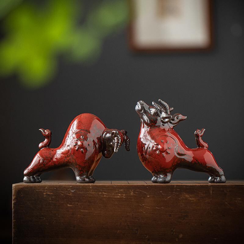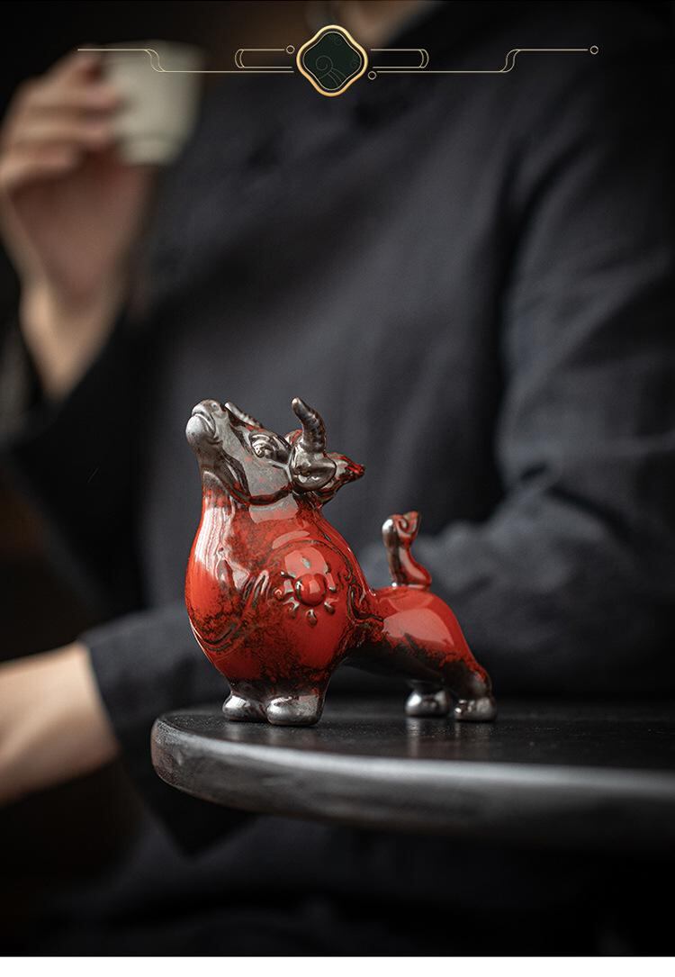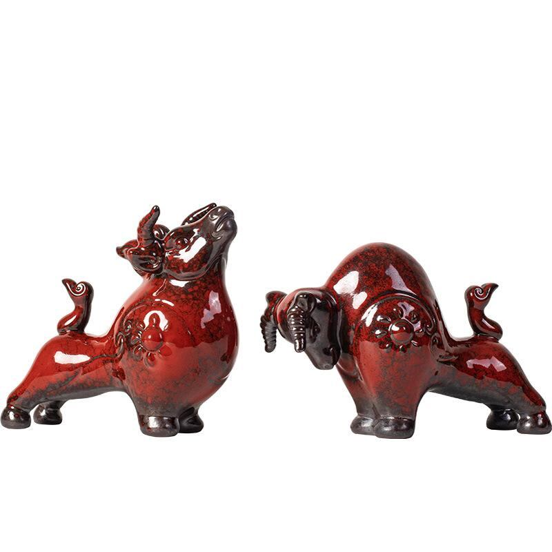 置物 陶器製 干支 牛 オブジェ レッド 赤色 窯変赤 リビング 玄関 飾り インテリア 招財 金運 幸運 縁起物 吉祥物 開運 中華風 アジアンテイスト おしゃれ モダン ディスプレイ