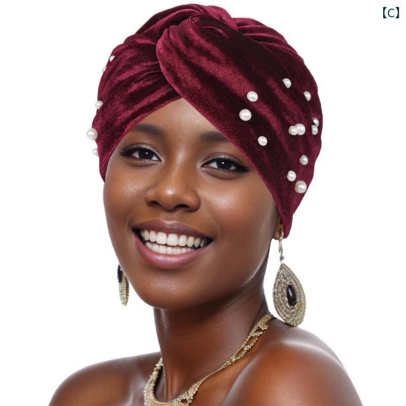 ターバンハット レディース ベロア ビーズ装飾 ツイストデザイン インナーキャップ ポリエステル 柔らかい 伸縮性 オールシーズン対応 高級感 普段使い お洒落