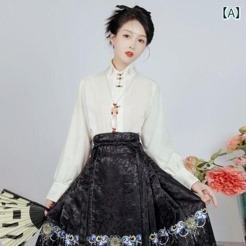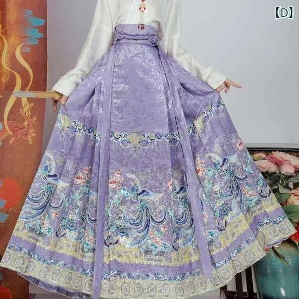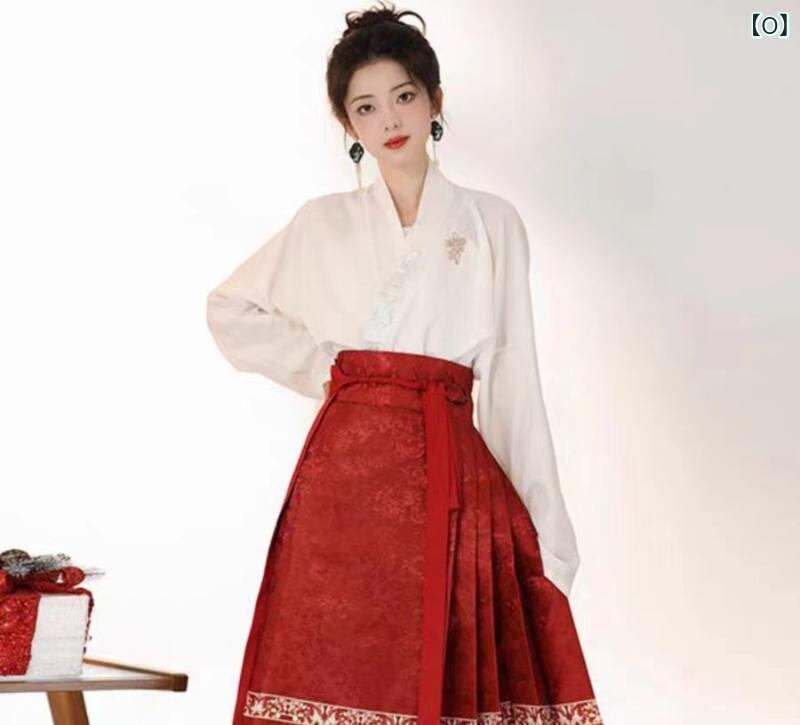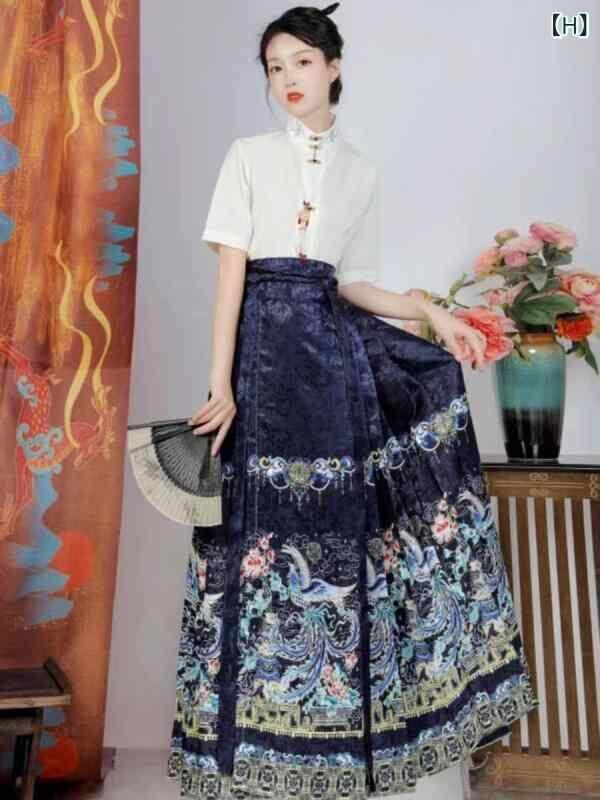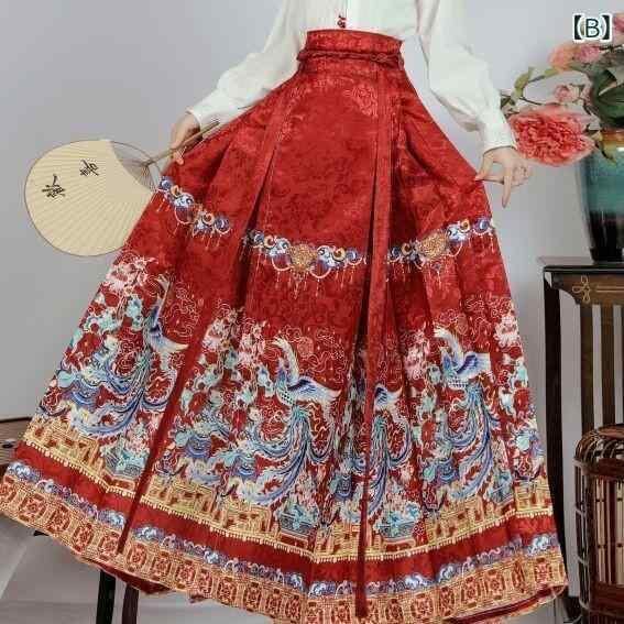 漢服セット レディース 中国風 高級感 エレガント 華やか 鳳凰柄 ポリエステル素材 改良明朝様式 馬面スカート 披露宴ドレス 金赤色 フォーマル イベント用