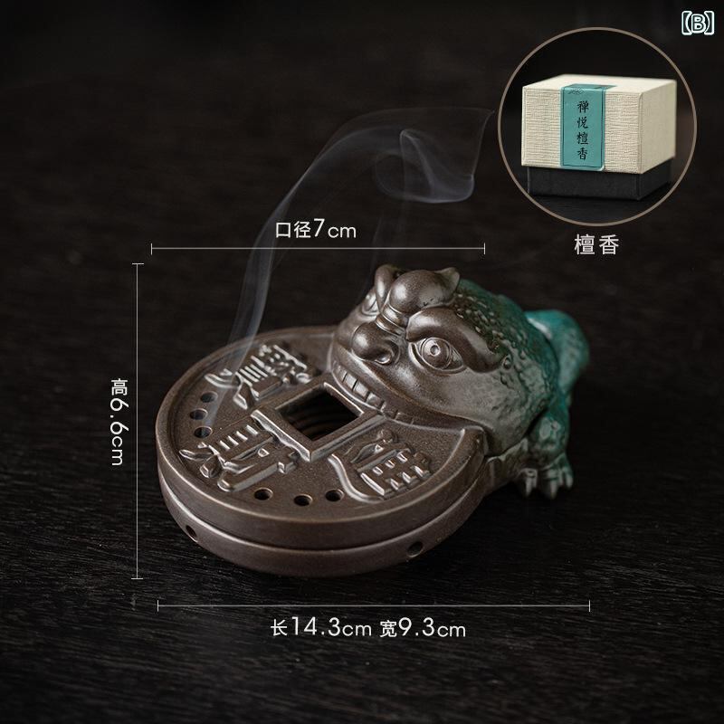 ・種類: 出っ歯ヒキガエル香炉、出っ歯ヒキガエル香炉+白檀48巻、出っ歯ヒキガエル香炉+崖柏48巻、出っ歯ヒキガエル香炉+沈香48巻、出っ歯ヒキガエル香炉+ヨモギ48巻
