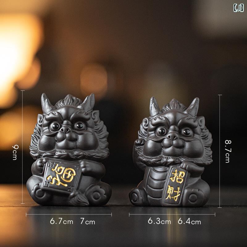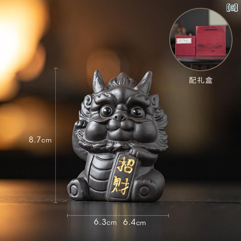 置物 かわいい ミニ 貔貅 陶磁器製 中華風 おしゃれ 瑞獣 金運招来 ラッキーアイテム 縁起物 リビング 茶室 卓上 インテリア装飾 オブジェ 赤 黒