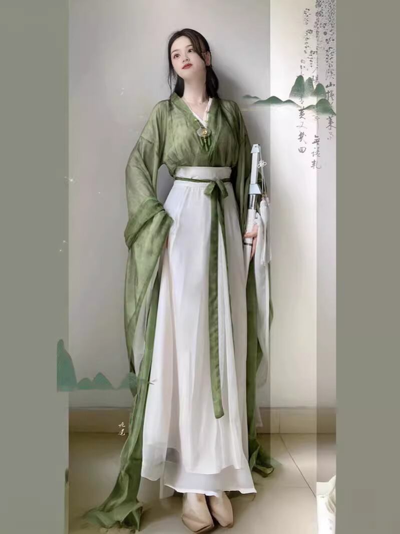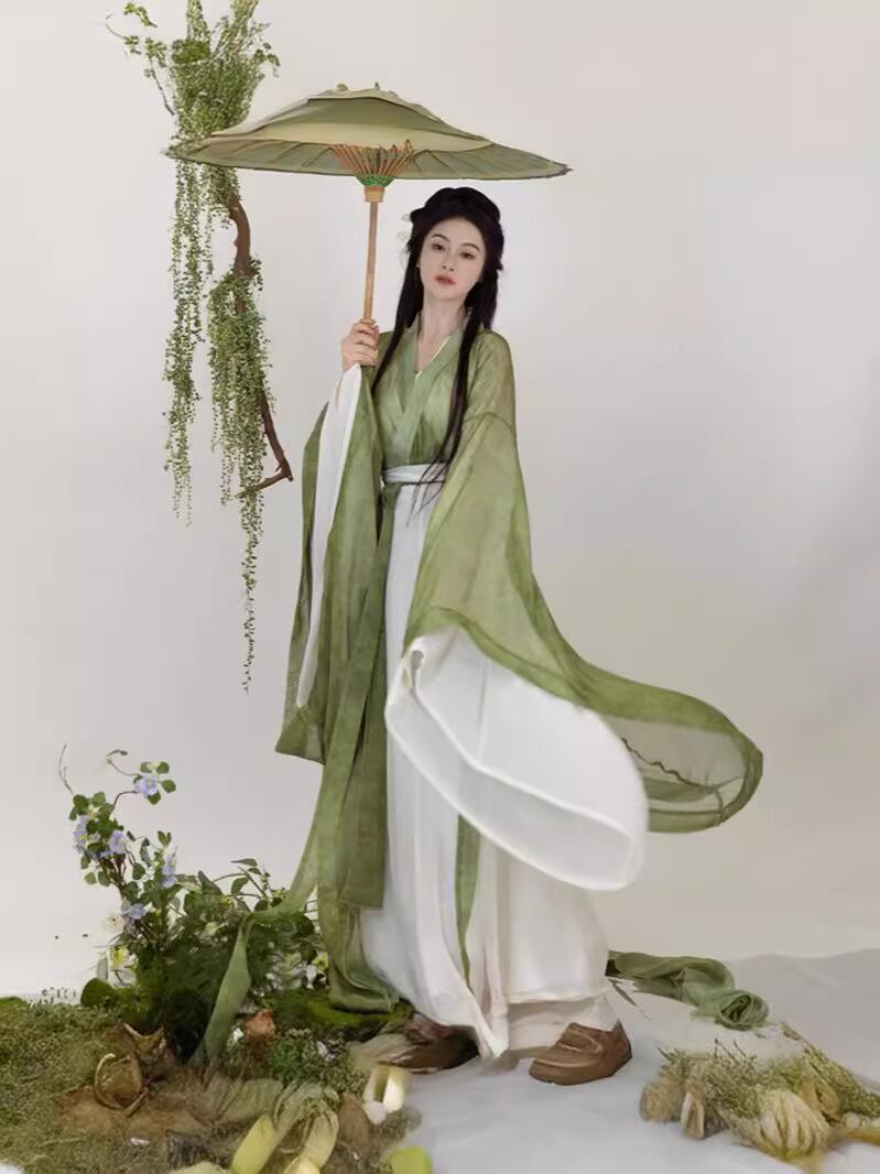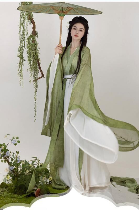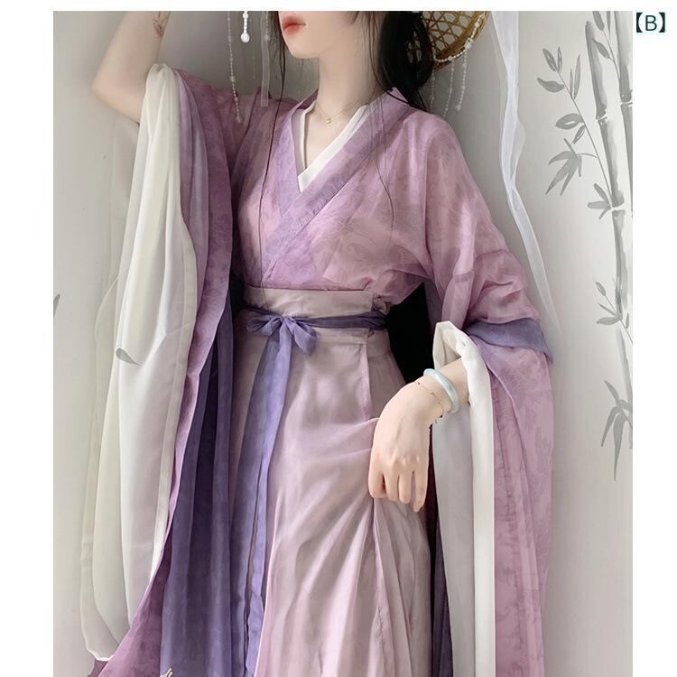 漢服 レディース 女性用 魏晋 南北朝風 広袖 大袖 儒八破スカート 上下セット ポリエステル ドレープ 軽やか 仙女風 優雅 舞台衣装 発表会 イベント コスプレ グリーン パープル アイボリー