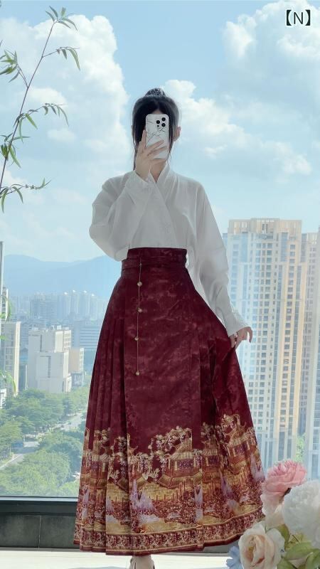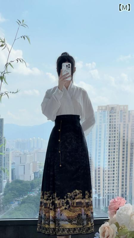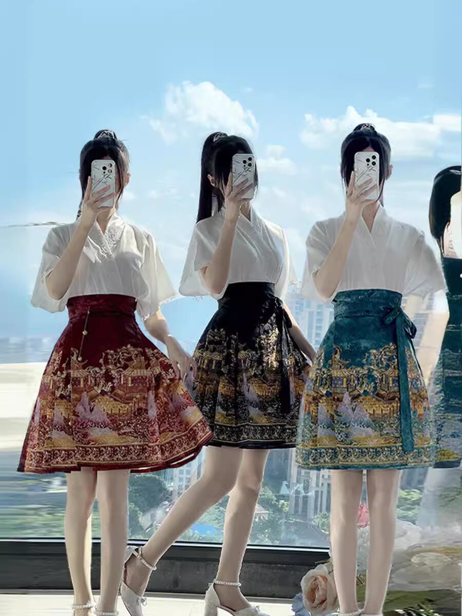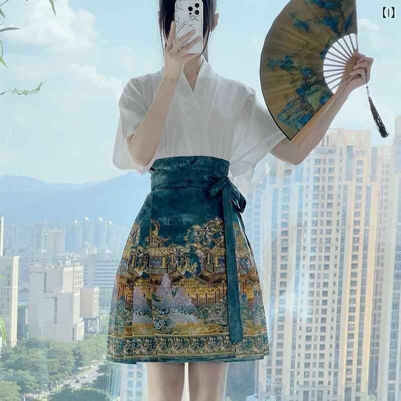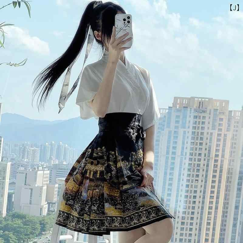 スカート 馬面スカート 新中華風 夏 漢服 明朝様式 モダンアレンジ 中国風 デイリー 普段使い 通勤 オフィス ポリエステル ボトムス ブルー ブラック レッド