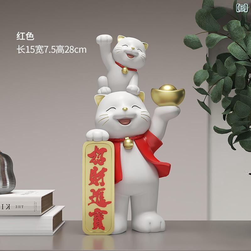 招き猫 大型 置物 開店祝い 開業祝い ギフト フロア 床置き リビング 玄関 受付 オブジェ インテリア モダン シンプル 縁起物 ラッキーアイテム 合成樹脂製 オレンジ レッド ゴールド | cybercart