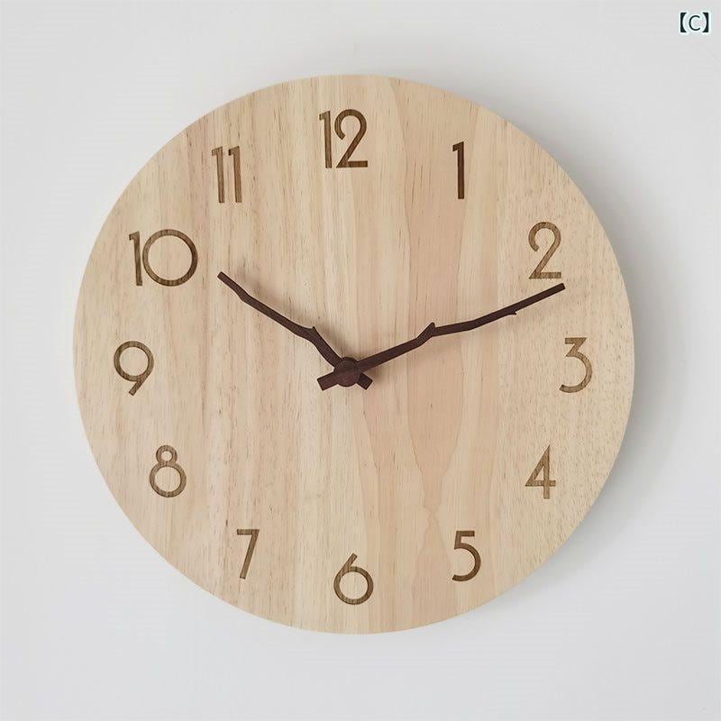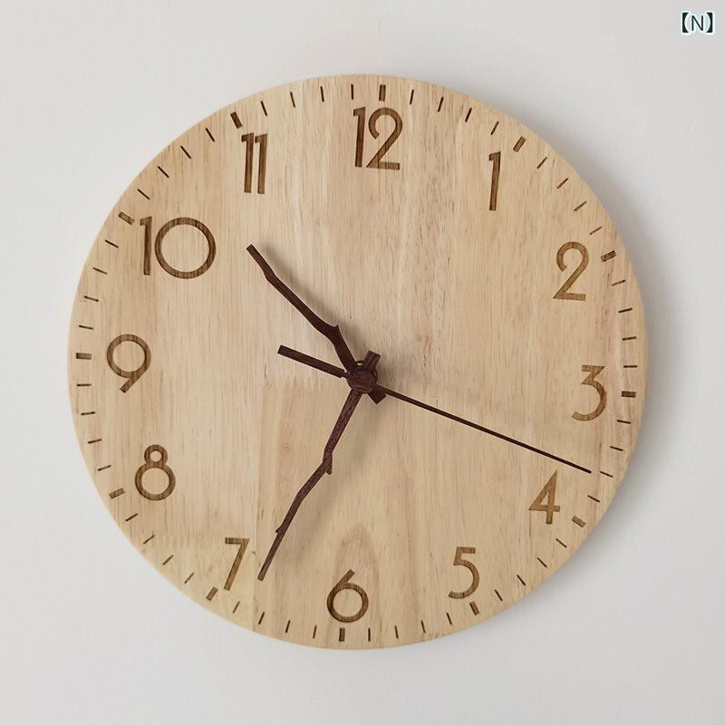 掛け時計 北欧スタイル 天然木 無垢材 静音 サイレント 壁掛け時計 リビング 寝室 家庭用 おしゃれ シンプル 上品 穴開け不要 インテリア 装飾 ナチュラルウッド デザイン時計
