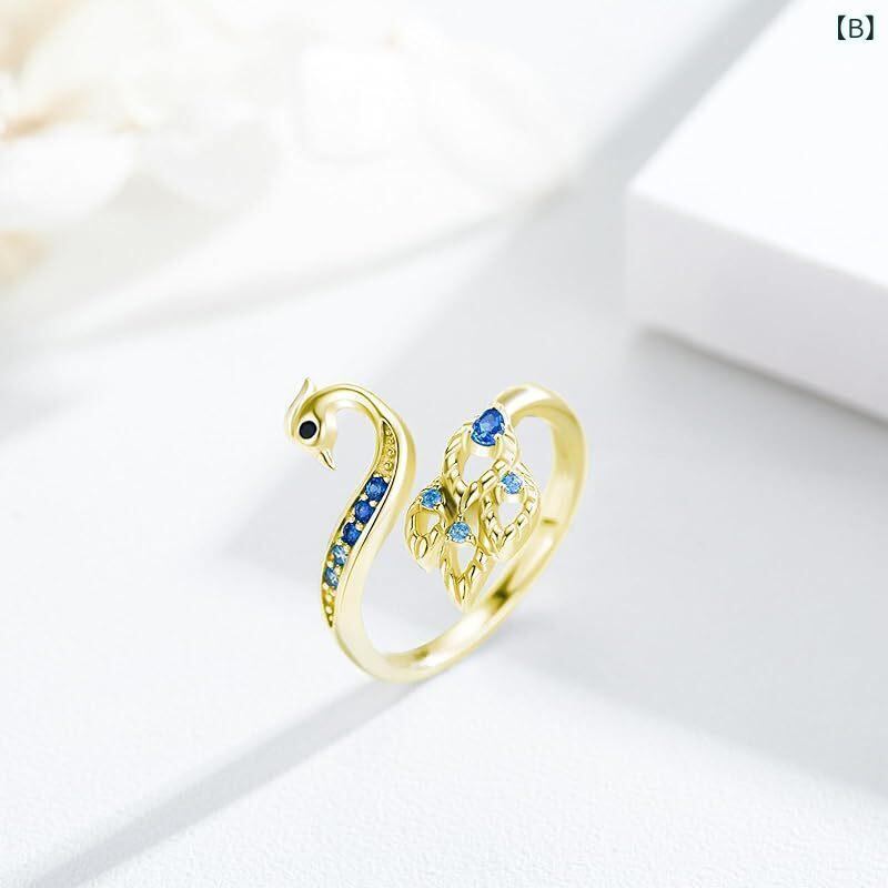 リング レディース 高級感 鳳凰 フェニックス 孔雀ブルー ラインストーン 合金製 オープンリング フリーサイズ 調節可能 指輪 ゴールド ローズゴールド ホワイトゴールドカラー ファッション ジュエリー