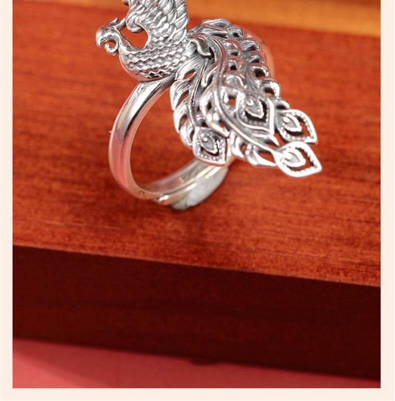 指輪 レディース 女性用 フェニックス 鳳凰 レトロ アンティーク 民族風 エスニック 中華風 大ぶり 存在感 個性的 フリーサイズ サイズ調整可能 調節可能 クラシック 銅製