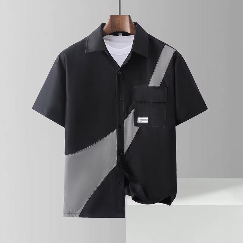 シャツ メンズ 半袖 ゆったり オーバーサイズ 切り替え 接触冷感 アメカジ ストリート クール 薄手 ポリエステル 普段使い 防シワ 襟付き トップス 夏物