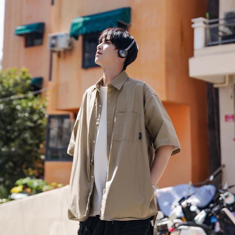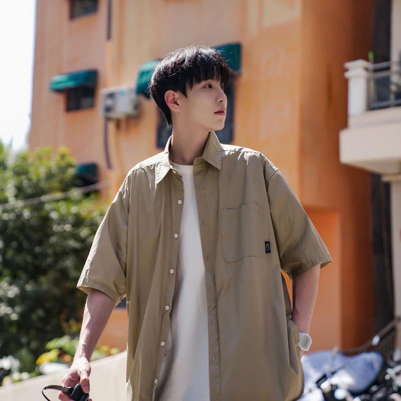 シャツ トップス メンズ ネイビー 半袖 五分袖 夏 薄手 ポリエステル素材 ゆったり ストリート カジュアル レトロ 小花柄 シワになりにくい 羽織り アウター