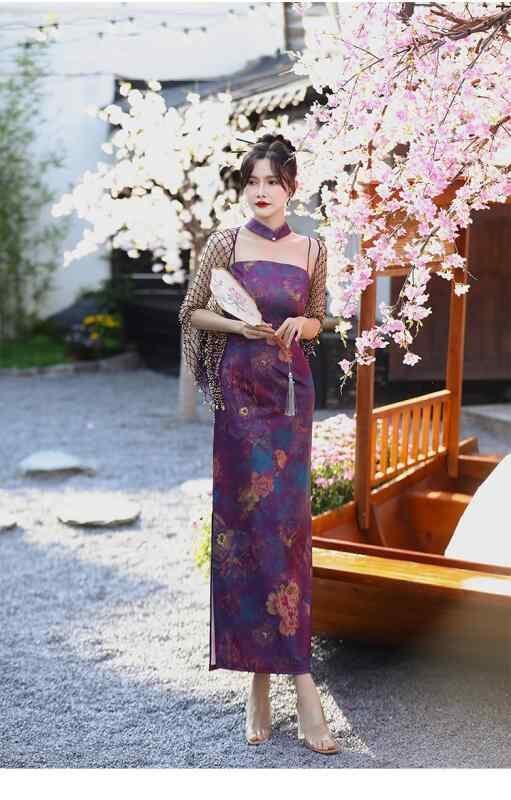 ・素材: ミルクシルク・主な素材成分: ポリエステル50%〜70%・丈: ミドル丈・ネックライン: ボートネック・袖丈: ノースリーブ・スリット: ロータイプ・カラー展開: パープル、ピーコックグリーン・サイズ展開: S、M、L、XL、XXL・スタイル: レトロクラシック・対象年齢: 大人・対象: 女性