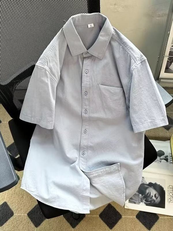 シャツ メンズ 男性用 半袖 夏 ゆったり オーバーサイズ ビッグシルエット ドレープ感 カジュアル 普段使い 洗濯可能 シワになりにくい ノーアイロン ポリエステル