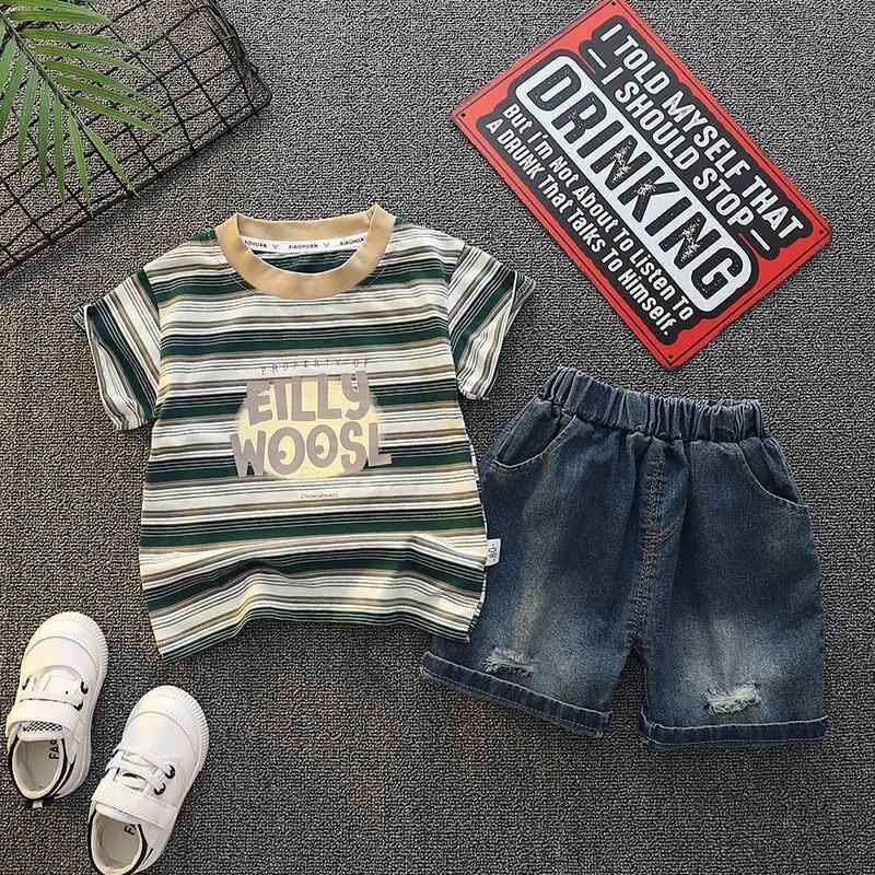 Tシャツ セットアップ キッズ 男の子 韓国ファッション 半袖 ストライプ柄 アルファベットプリント ショートパンツ 上下セット 薄手 コットン 夏 普段使い カジュアル ルームウェア