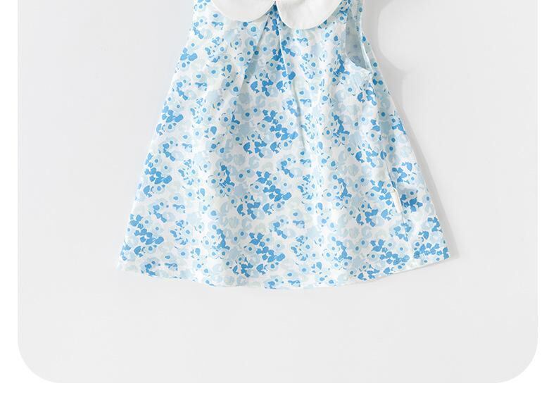 ワンピース ベビー 女の子 ノースリーブ 夏 薄手 小花柄 綿100% Aライン ふんわり かわいい お出かけ 普段使い リゾートスタイル 白地 ブルー花柄