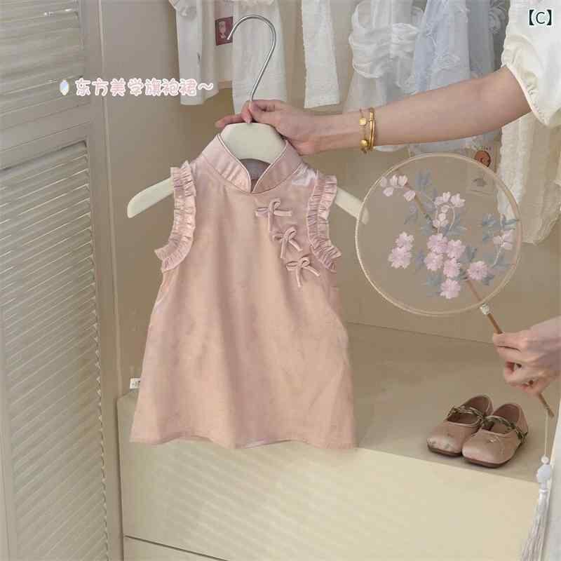 ワンピース 女の子 キッズ 子供 夏 ノースリーブ ベスト キャミソール ティアード 上品 かわいい おしゃれ コットン ピンク イエロー ブルー