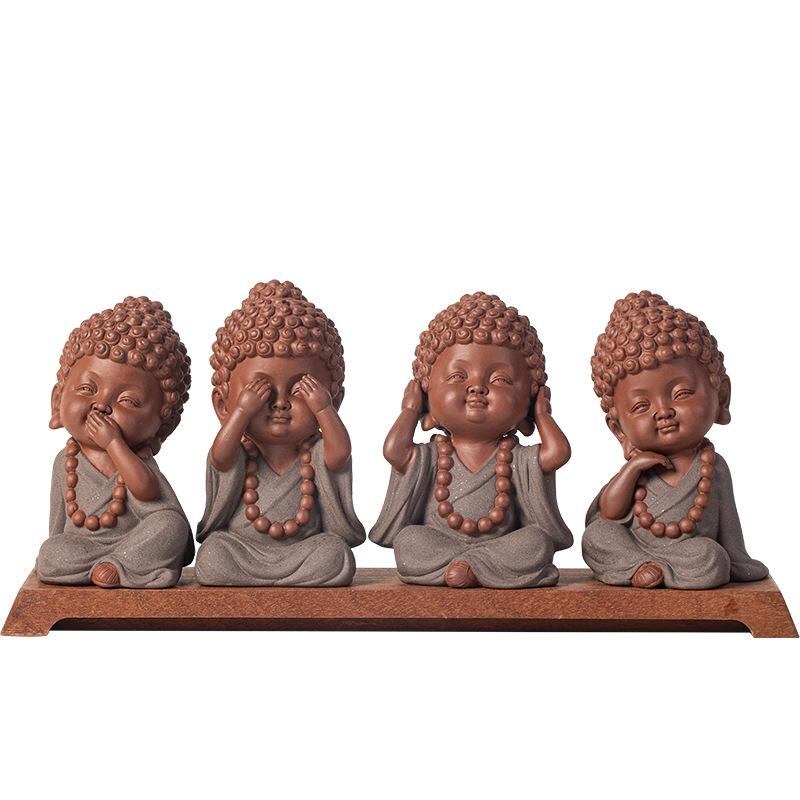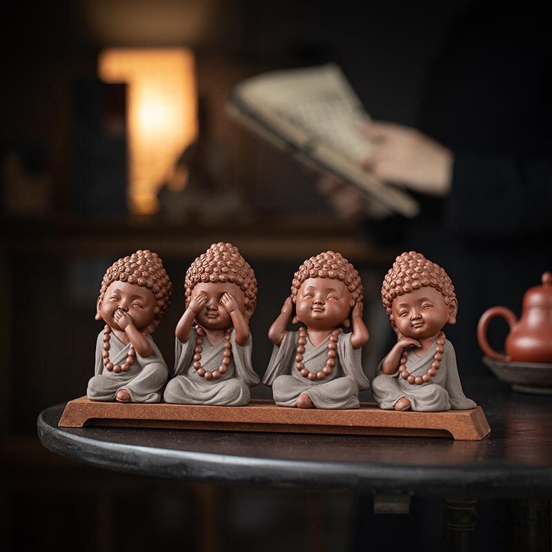 置物 ミニ仏像 ベビー仏像 陶器製 かわいい 新中国風 禅スタイル 卓上飾り 茶室 書斎 リビング 寝室 玄関 インテリア オブジェ 見ざる聞かざる言わざる 癒し プレゼント ギフト 誕生日 記念品 ユニーク