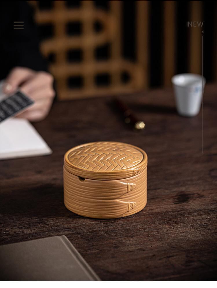 灰皿 アッシュトレイ 陶器製 蓋つき 防風 灰飛散防止 レトロデザイン 中国風 モダンチャイニーズ 開運 縁起物 リビング オフィス ティーテーブル用 おしゃれ インテリア 喫煙具