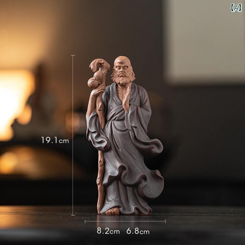 置物 中国風 禅 達磨大師 渡江像 手作り 陶磁器 陶器製 高級感 オブジェ リビング 玄関 飾り棚 卓上 インテリア装飾 縁起物 ブラック