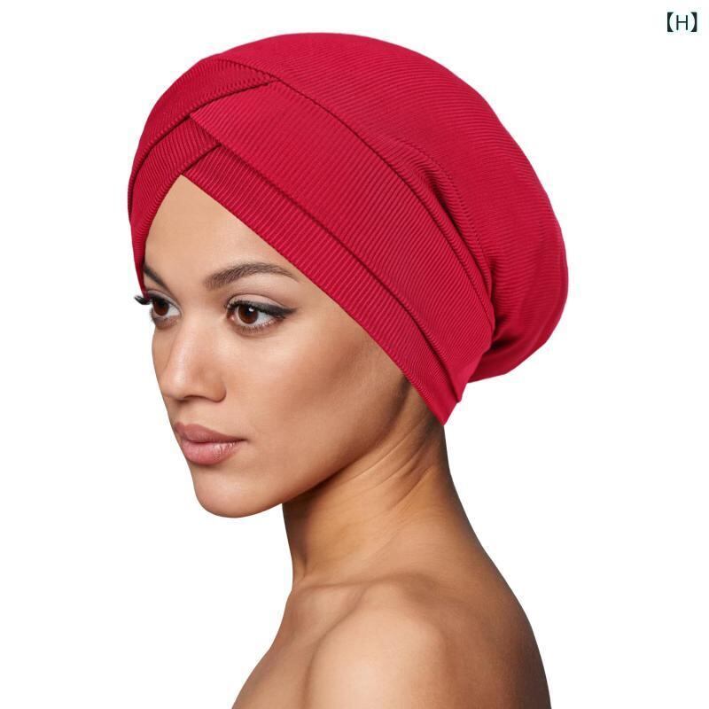 ターバンハット レディース エレガント クロスデザイン プリーツ加工 ソフトタッチ ポリエステル素材 軽量 通気性 無地 普段使い デイリーユース オールシーズン対応 室内帽 ファッション小物