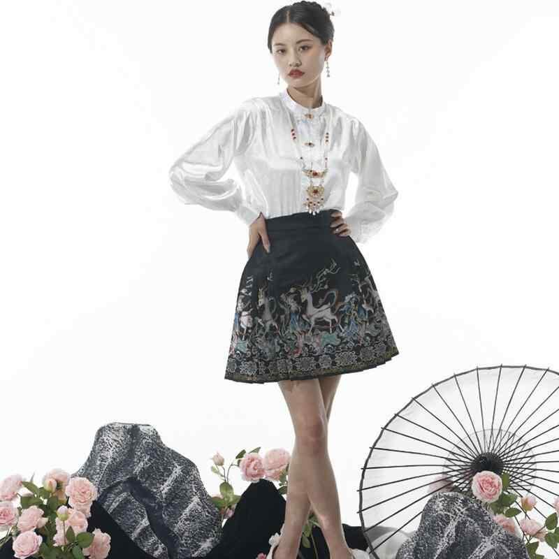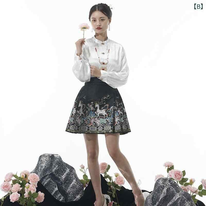 漢服 レディース 新中華風 国風 改良モダンデザイン ショート丈 馬面スカート トップス ポリエステル素材 セットアップ 日常使い 通勤 お出かけ 夏服