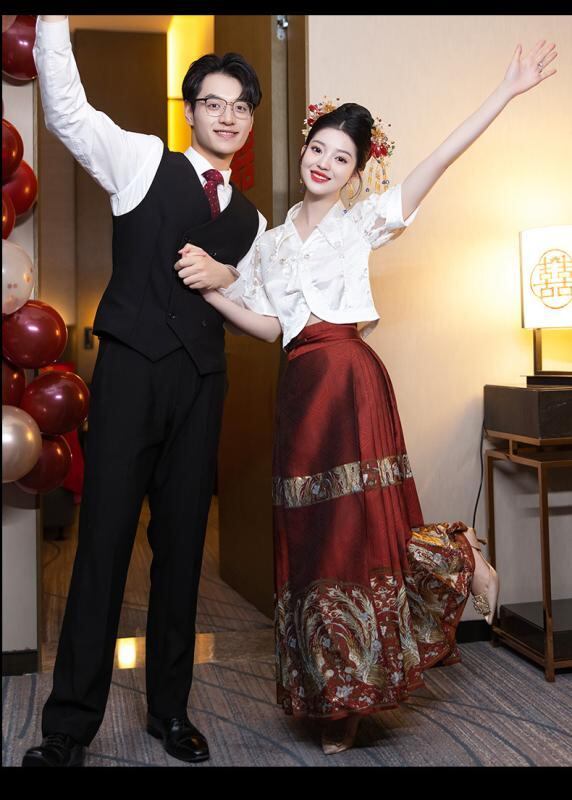 セットアップ レディース 新中式 改良漢服 馬面ロングスカート ポリエステル 上品 エレガント 普段使い 日常着 結婚式 披露宴 パーティー フォーマル