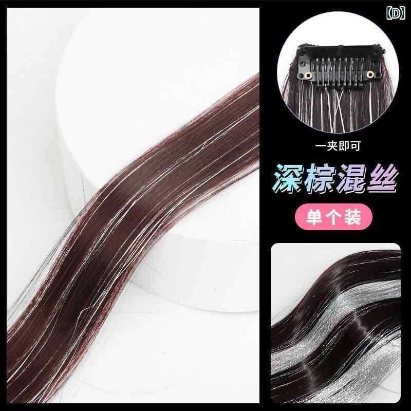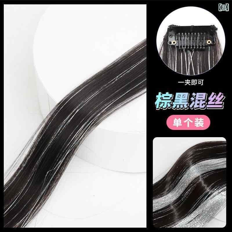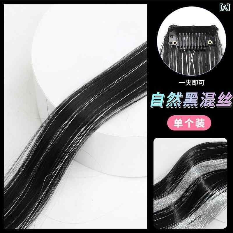 ヘアピース レディース イヤリングカラー エクステ ロング ストレート シームレス 耐熱ファイバー ワンタッチ 付け毛 カラフル シルバー ハイライト 簡単装着