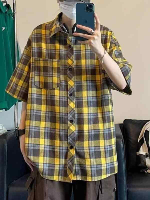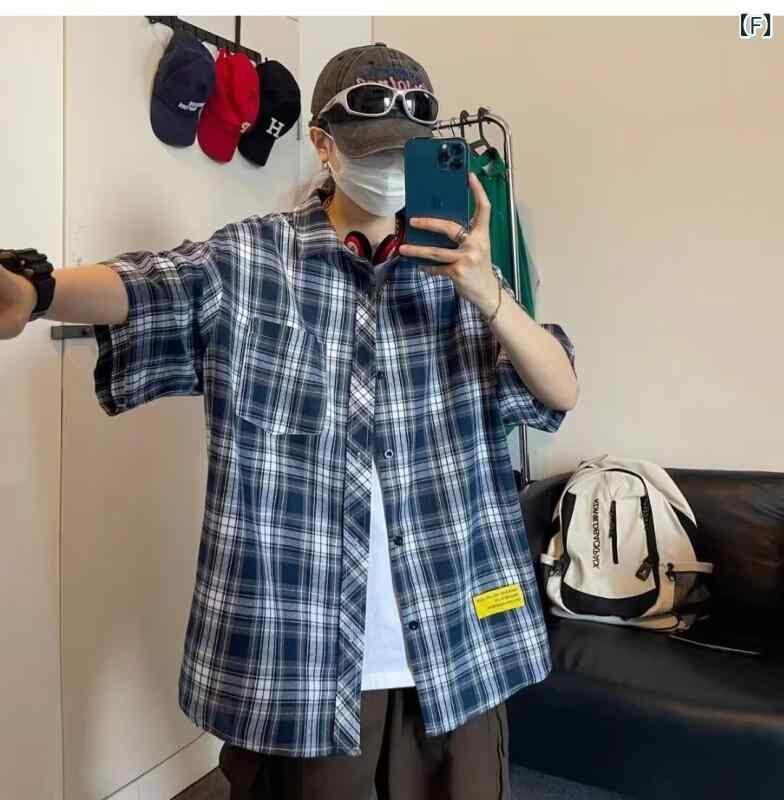 シャツ メンズ ゆったり ルーズ オーバーサイズ 長袖 チェック柄 コットン カジュアル ストリートスタイル 学生 韓国風 トレンド 薄手 ウォッシャブル 普段使い オールシーズン対応 羽織り ジャケット