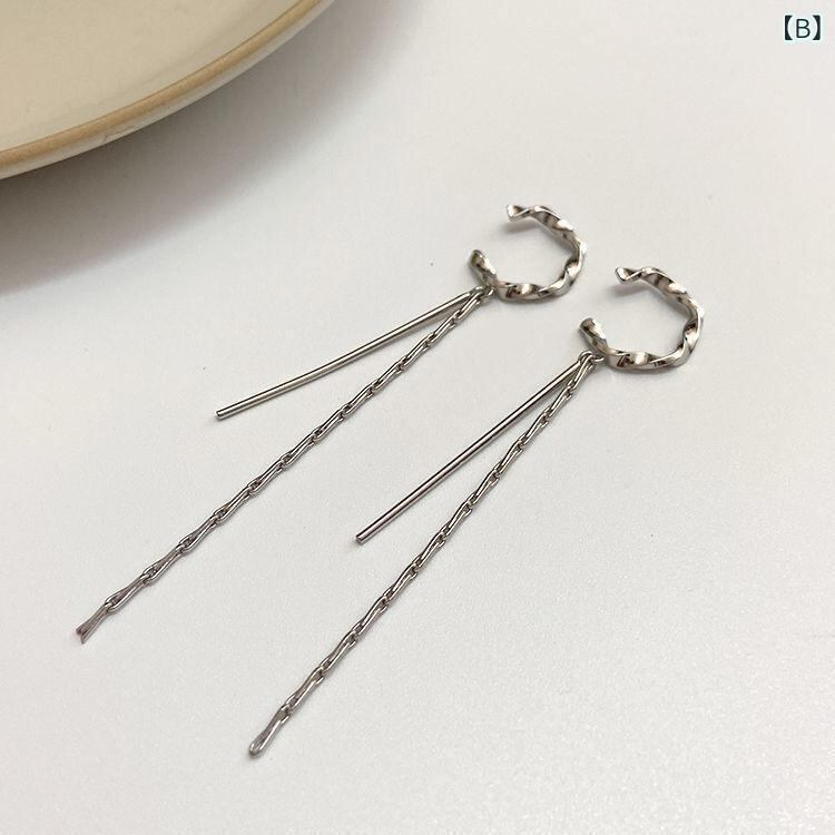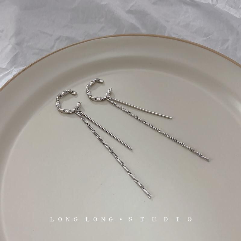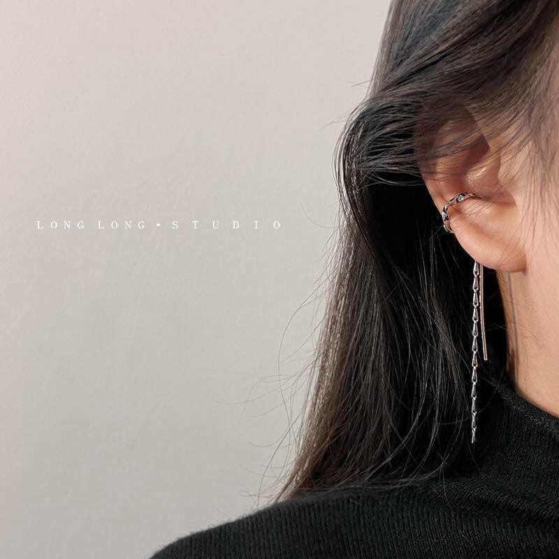 イヤーカフ レディース ノンホールピアス フリンジ タッセル 幾何学デザイン メタル素材 シンプル 華やか 上品 高級感 個性的 一体型 通勤 オフィス カジュアル デイリーユース 耳元アクセサリー