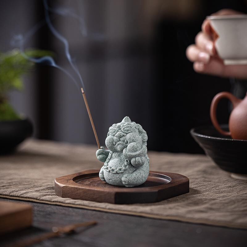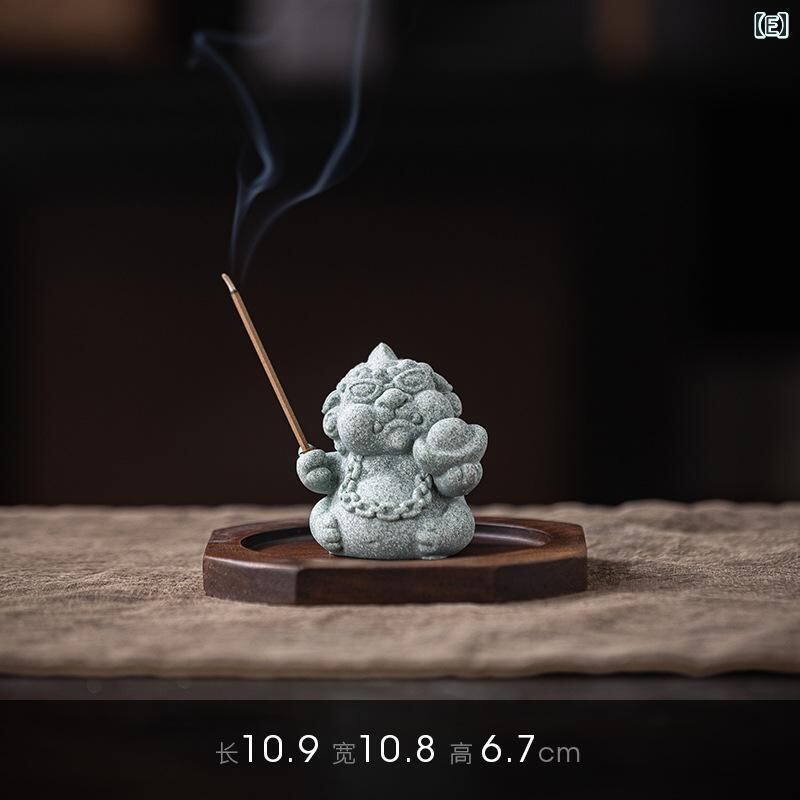 お香立て ヒキュウ 縁起物 かわいい マスコット ユニーク 個性的 卓上 室内用 線香用 香差し 青砂石製 レトロ調 和モダン 香炉