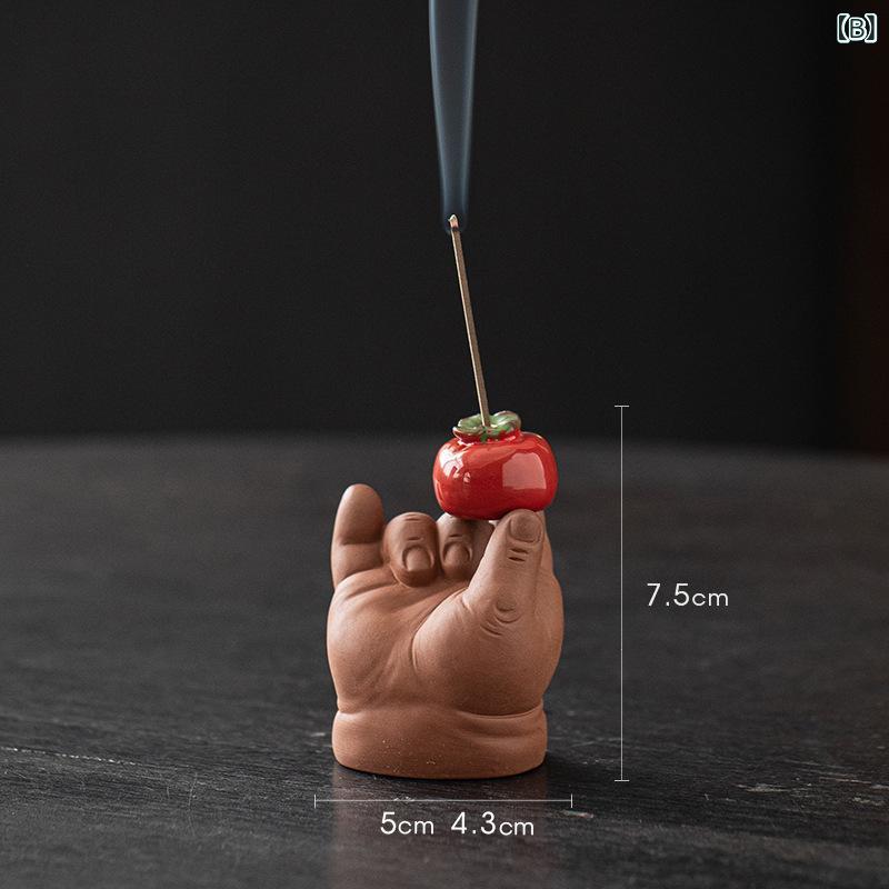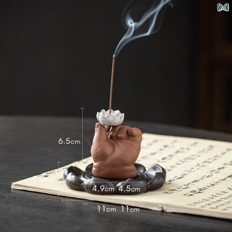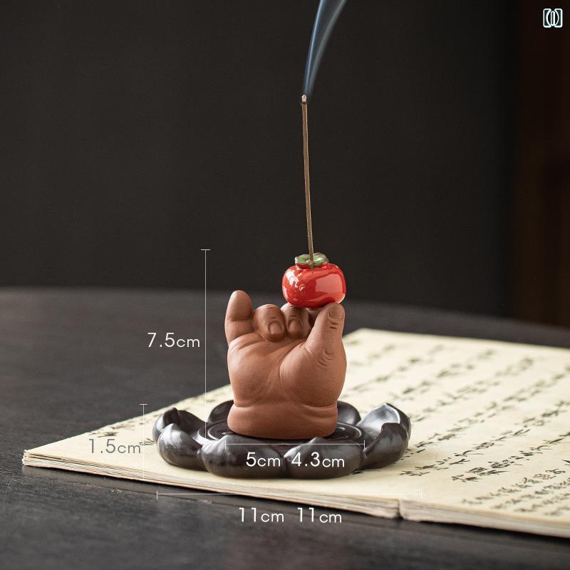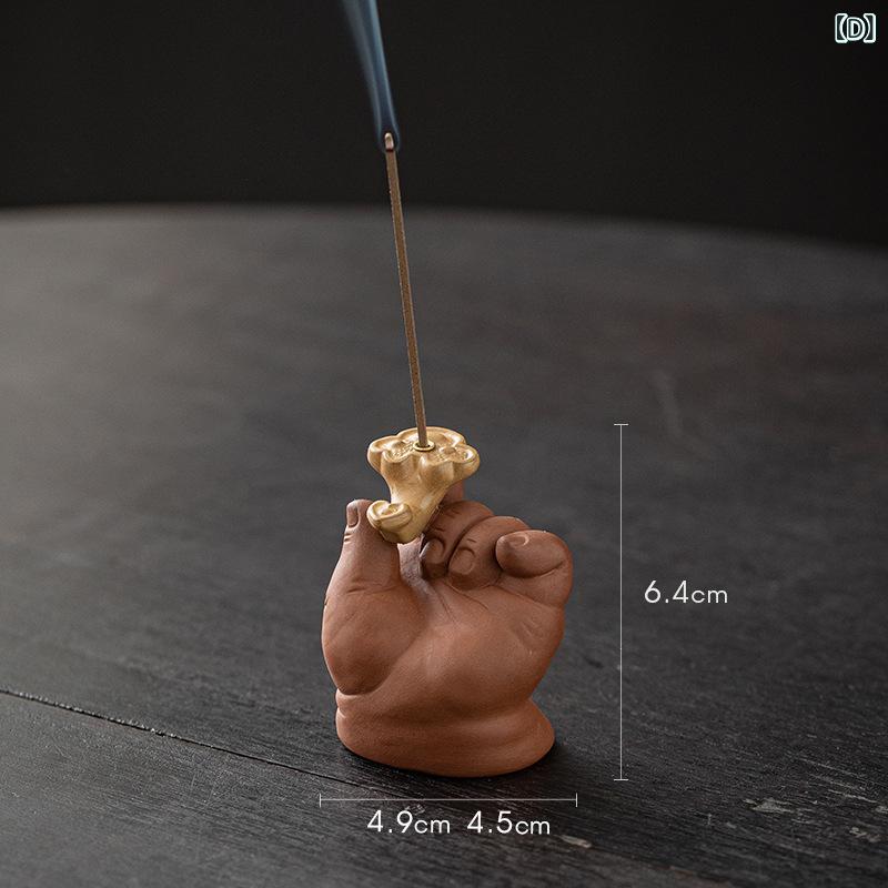 香炉 線香立て 仏手モチーフ 紫砂陶器 家庭用 室内用 卓上 茶室 書斎 デスク用 禅風 レトロ 和モダン 癒し リラックス 香皿 香差し 香道用具