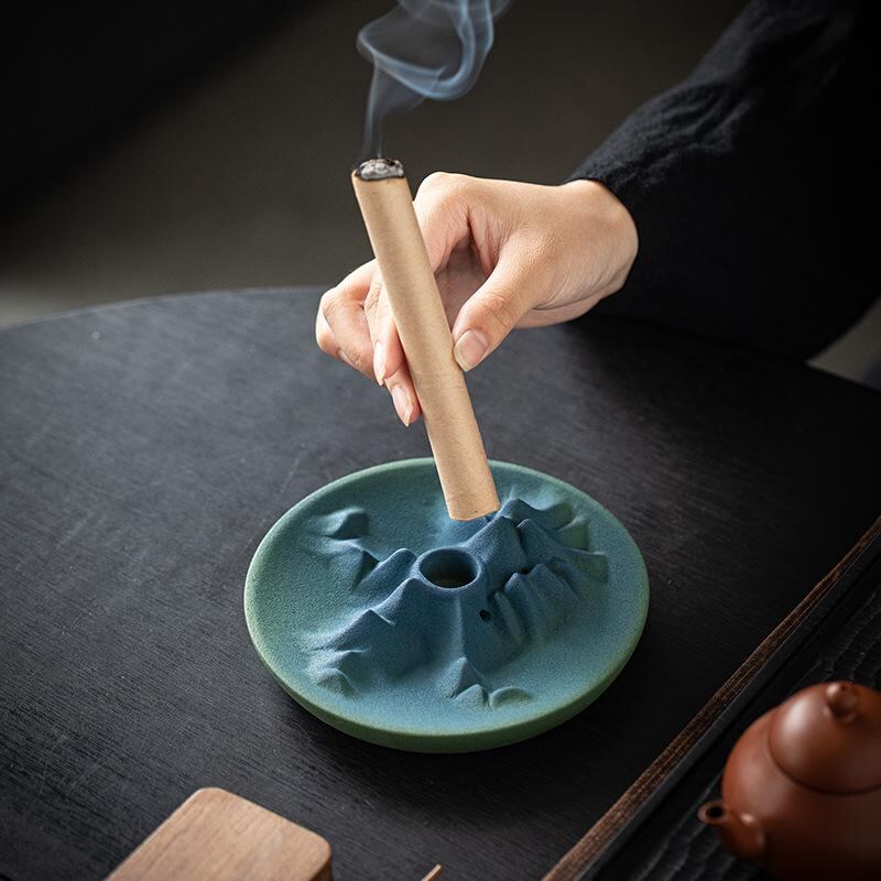 香炉 陶器製 お香立て 線香立て 艾灸棒 お灸用台座 ホルダー 固定スタンド 灰受け皿付き 家庭用 普段使い 瞑想 リラックス 癒やし 蚊よけ 虫除け 和風 レトロ アンティーク調