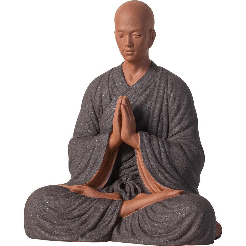 置物 禅 小僧 フィギュア 陶器製 かわいい 癒やし リビング 玄関 茶室 和モダン レトロ デスク 卓上 書斎 寝室 飾り棚 インテリア雑貨 アジアンテイスト 仏教デザイン グレー