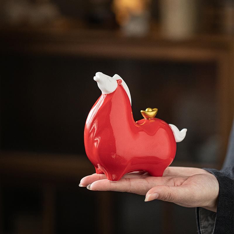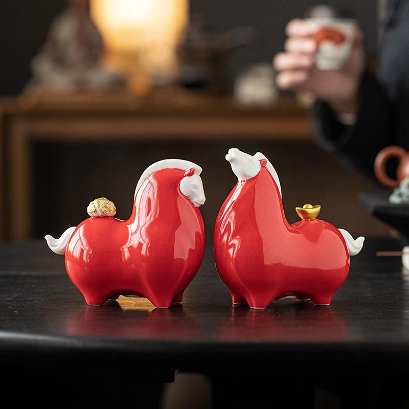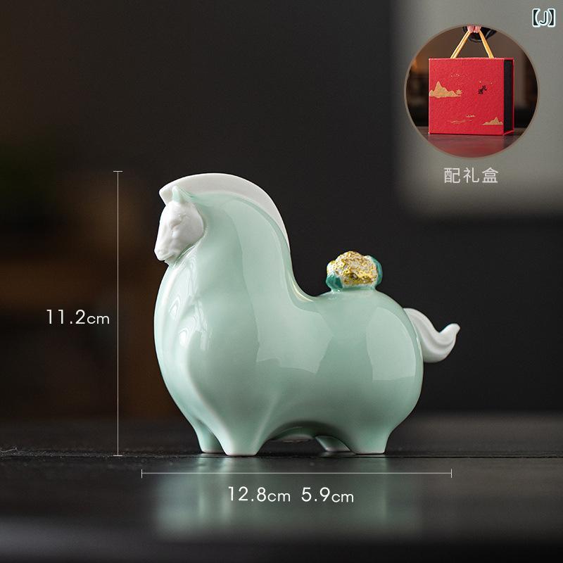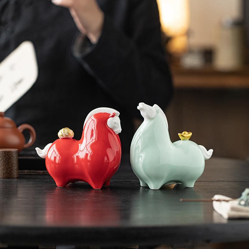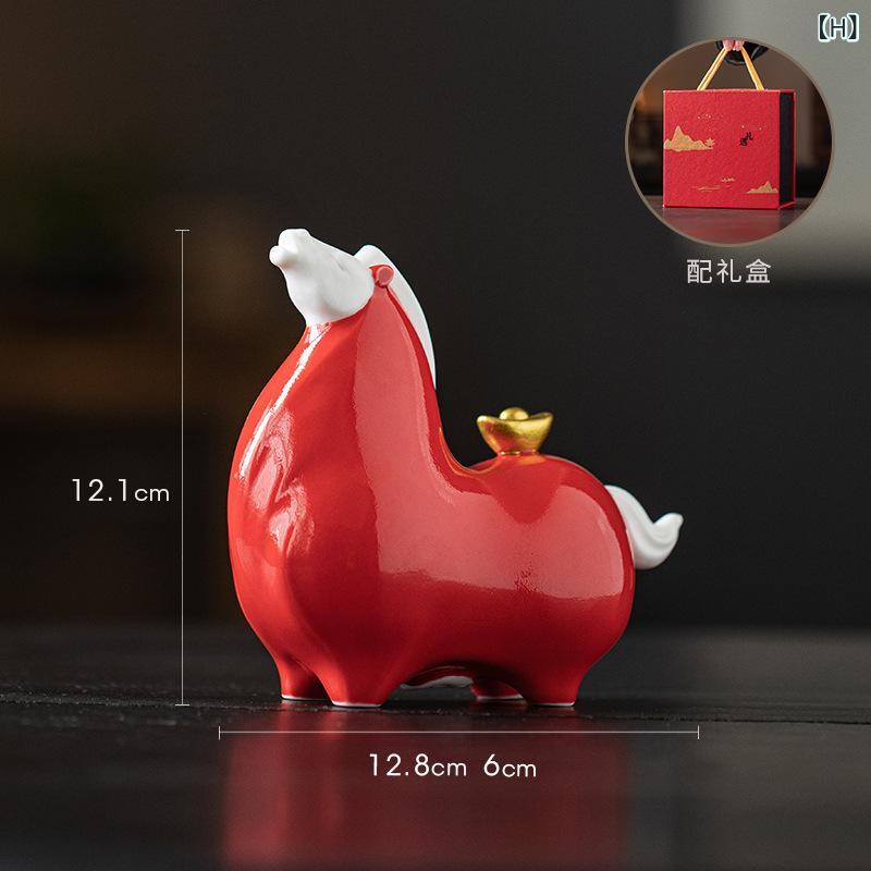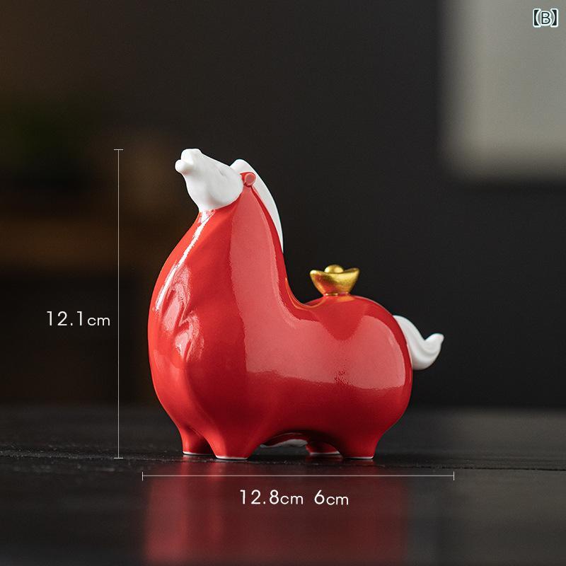 置物 干支 馬 ラッキーアイテム 陶器製 高級感 新中華風 リビング オフィス インテリア装飾 開運 縁起物 開業祝い 引越し祝い 贈り物 ギフト