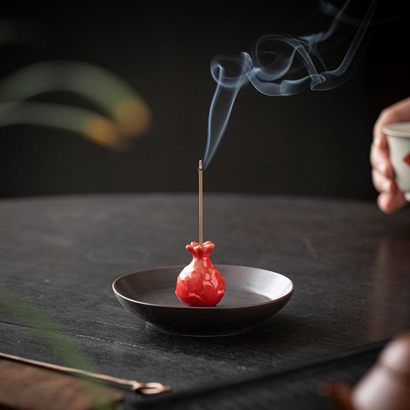 香立て ドラゴンフルーツ型 ユニークデザイン 陶器製 卓上用 室内用 家庭用 香皿 線香炉 禅風 和モダン インテリア 茶室 香道 アロマ 癒し リラックス 置物 オブジェ